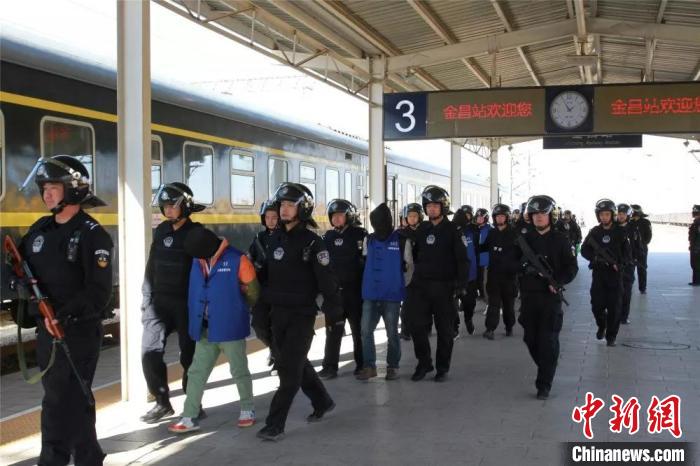 金昌警方押解11名犯罪嫌疑人。(资料图) 钟欣 摄